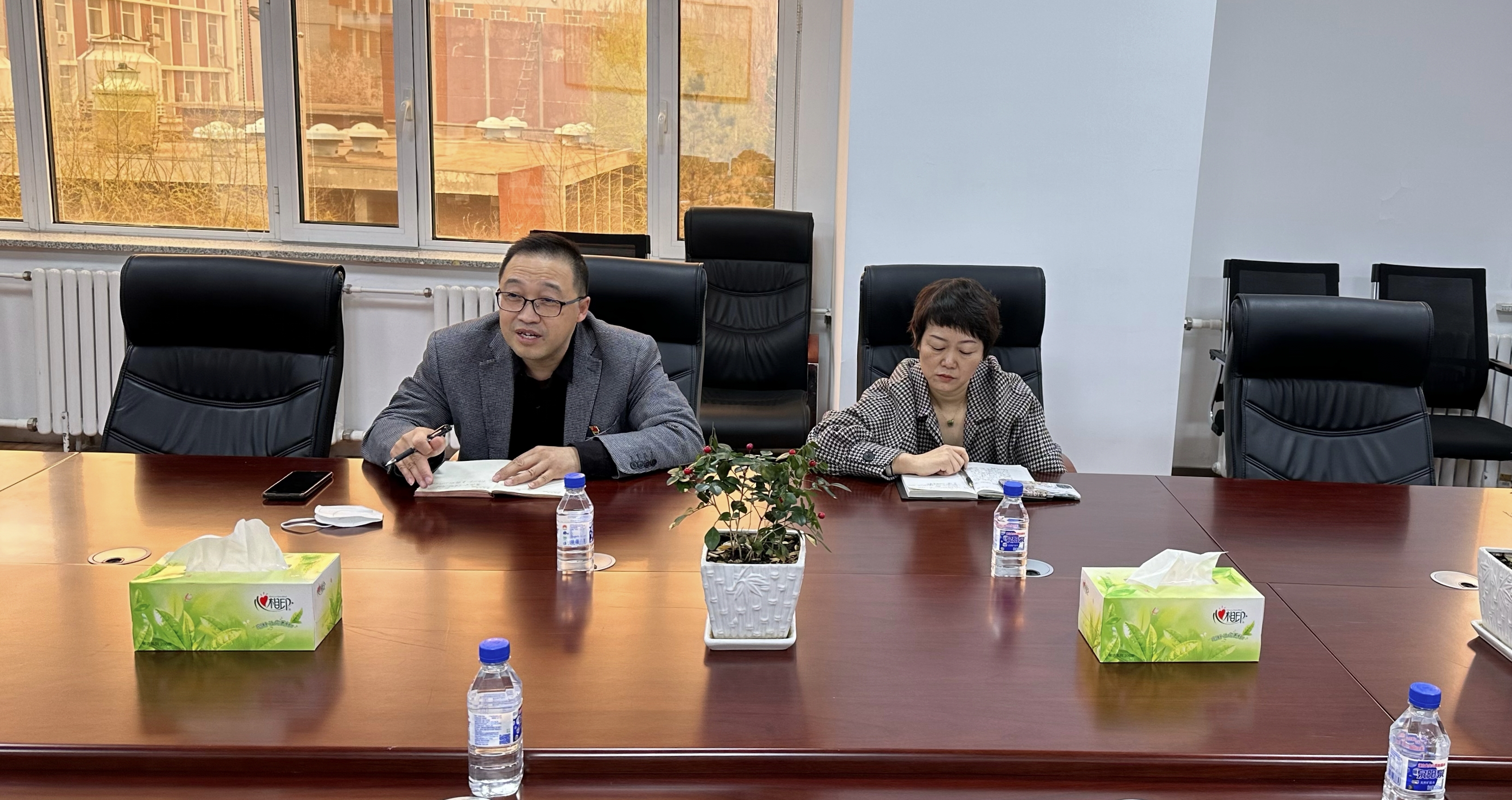 2023年4月11日上午,财务处东区财务办公室主任郑巍、东区财务办公室财务科科长冀晶焱来公司就财务及相关管理工作进行调研和指导。公司行政副经理吕昆、部分教师和管理干部代表参加了座谈会。