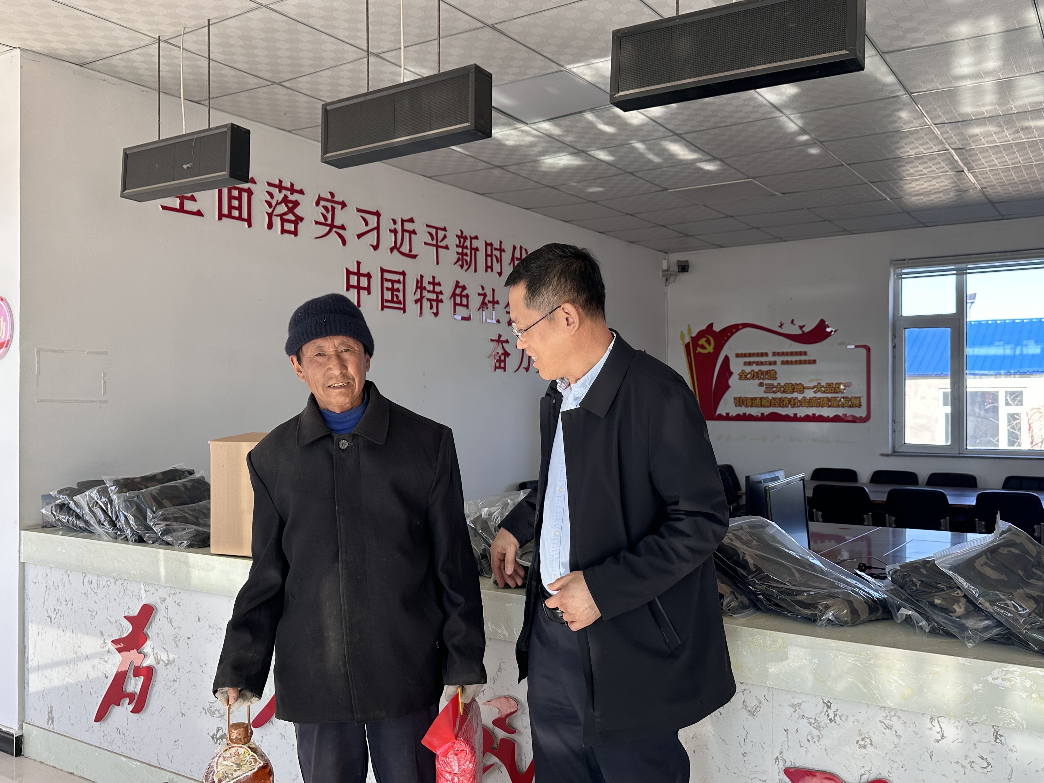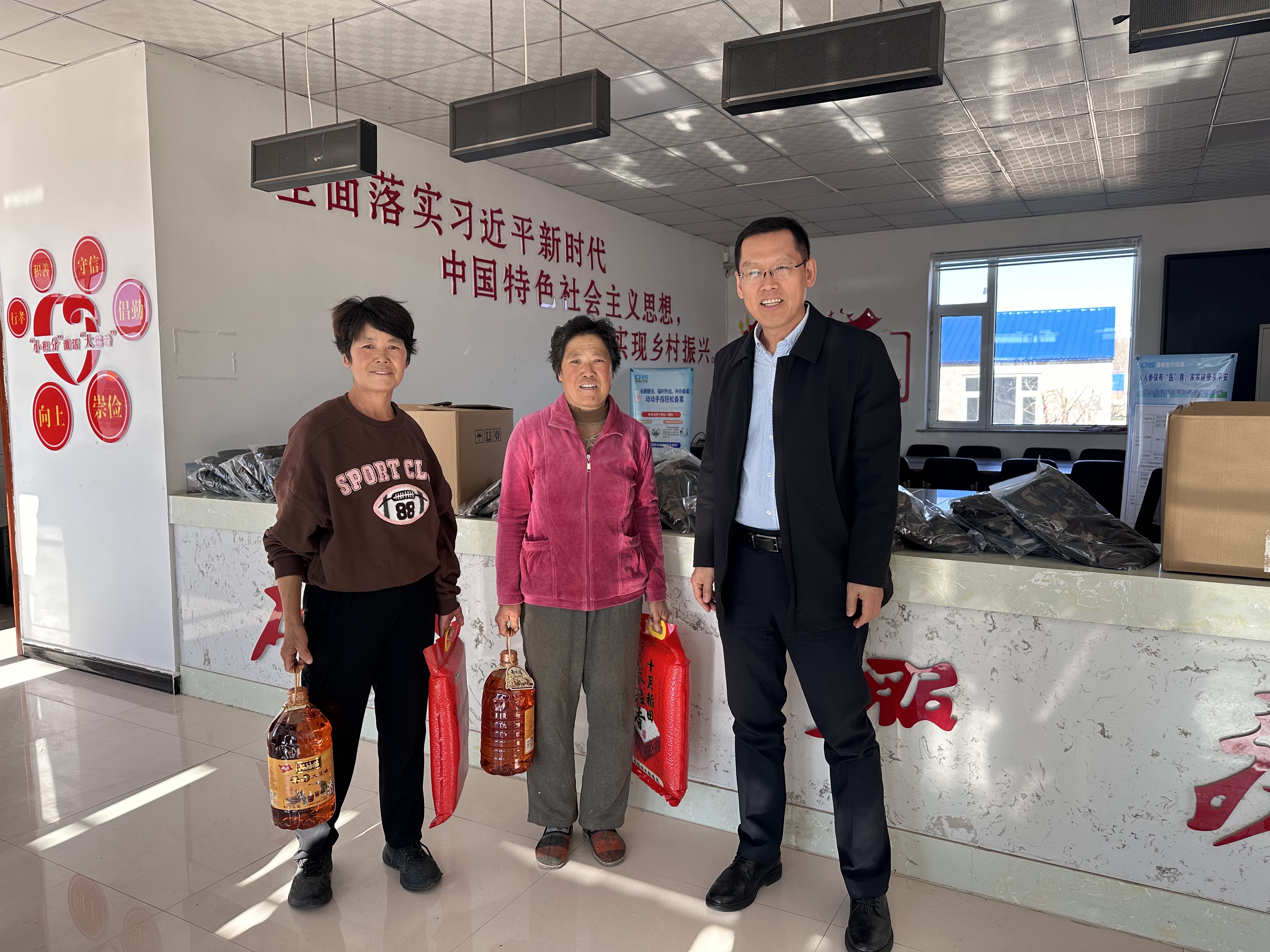 新丰村支部书记王海艳及驻村第一书记邢玉玲介绍了新丰村一年来的建设发展情况。公司行政副经理吕昆简要介绍了BETWAY必威前期参与通榆县乡村振兴的工作情况以及公司发挥专业优势助力通榆县交通局制定“通榆县综合交通运输规划和制定“客货邮融合发展”解决方案的工作。公司党委书记李善兴就乡村振兴在中国式现代化中的体现和加强党建工作对村基层工作的重要作用方面与村委会成员做了工作交流。之后,李善兴书记代表公司向村民捐赠了军训服装,向村里90岁以上年龄老人的家庭捐赠了粮油。此次活动加深了公司与新丰村的沟通交流,BETWAY必威将继续发挥自身优势,为助力新丰村更好发展做出贡献。